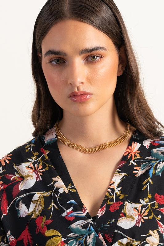 PANTALÓN NEGRO CON VIVO COLOR CHAMPAGNE