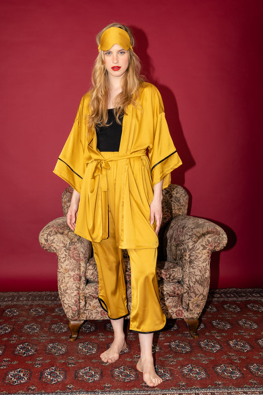 PANTALÓN CHAMPAGNE CON VIVO NEGRO