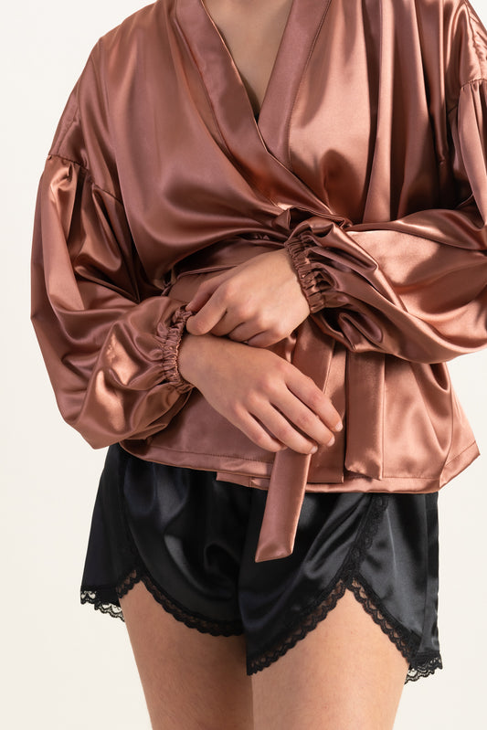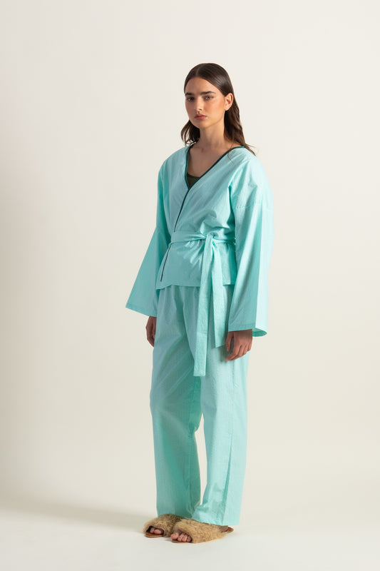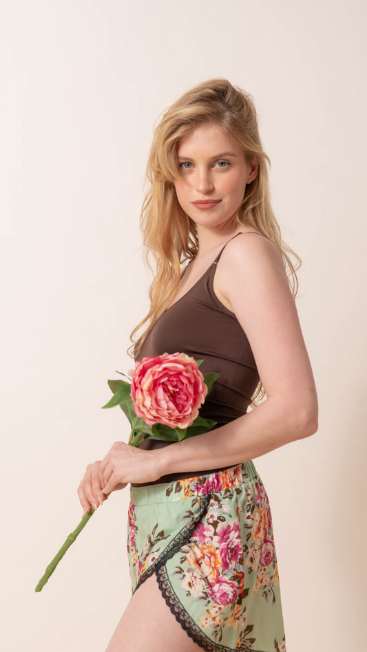 SHORT VERDE JADE CON ENCAJE NEGRO